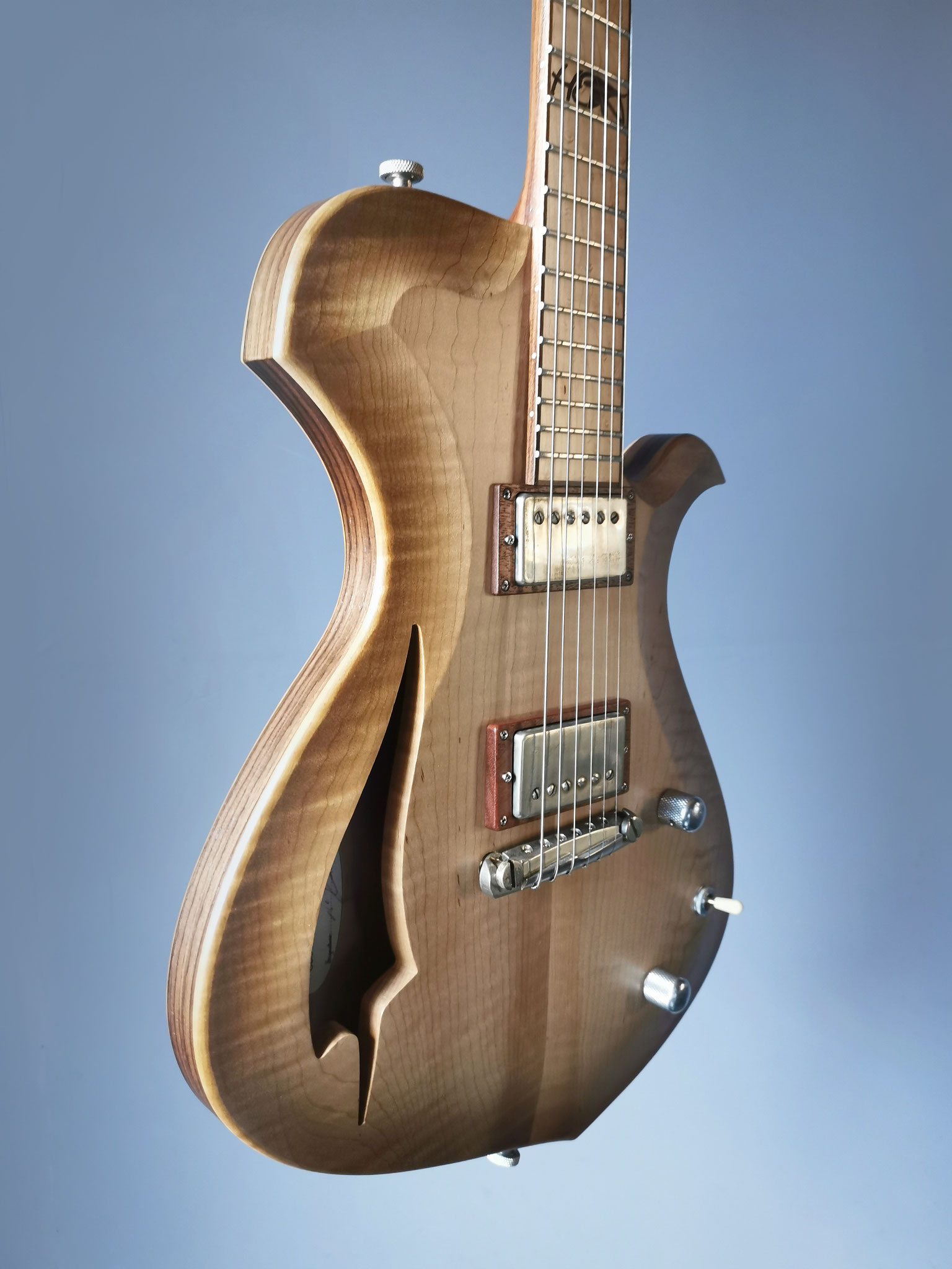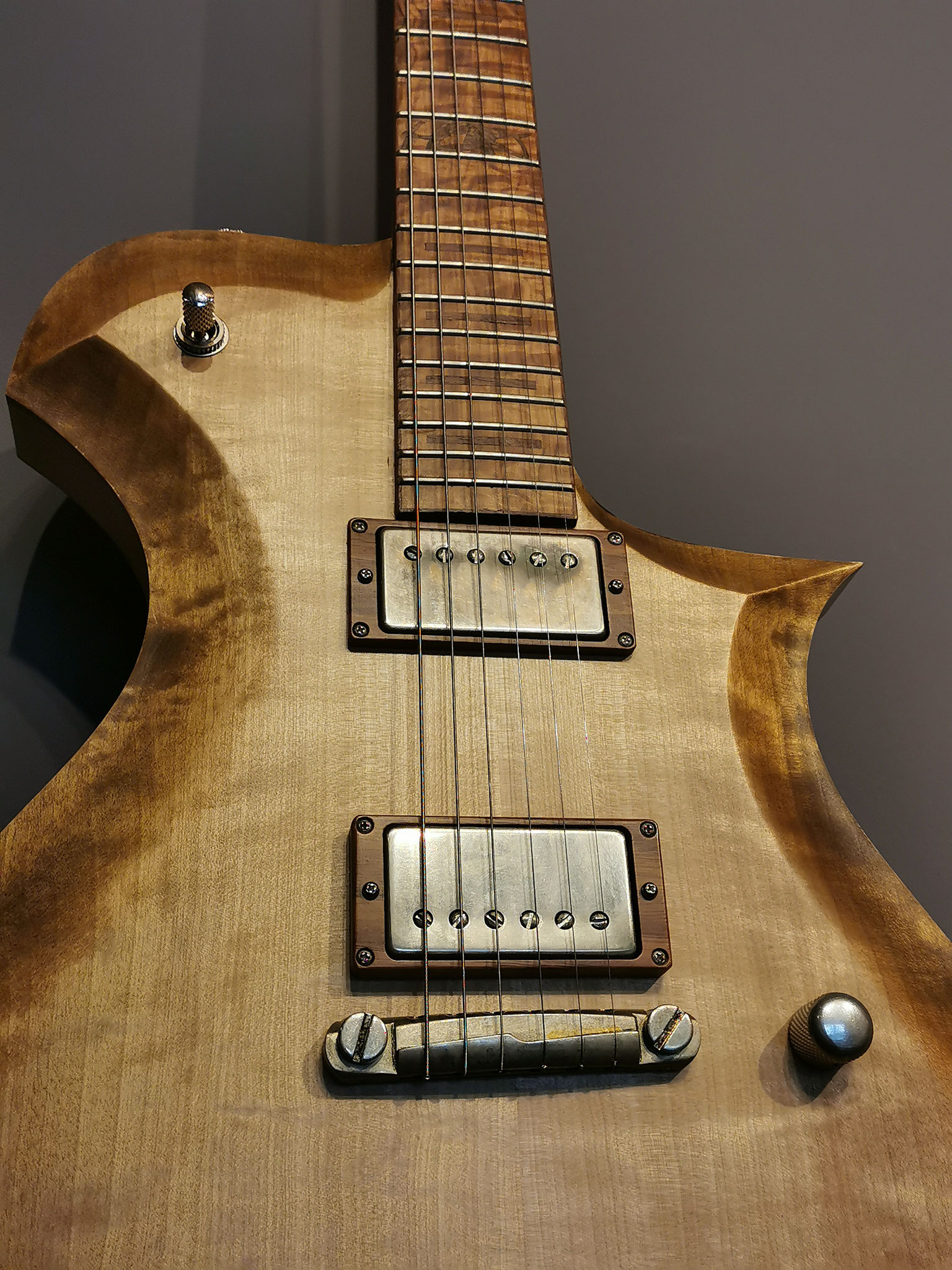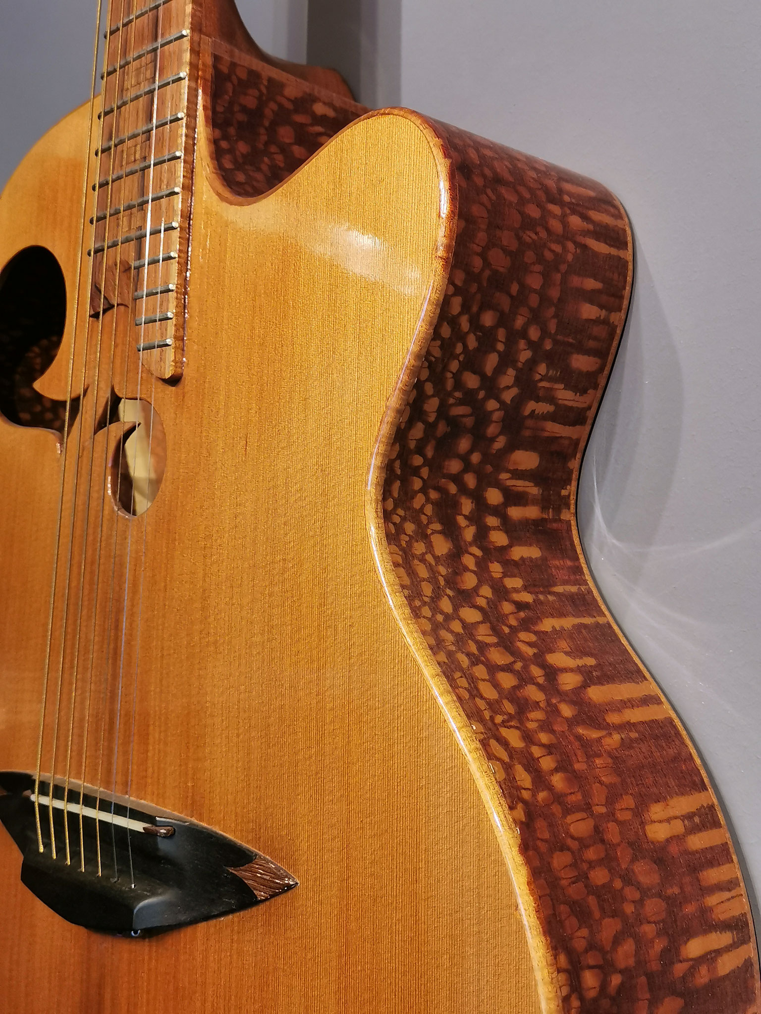 Für spezifische Klangansprüche erfolgt eine gezielte Auswahl erlesener Materialien. Bewusst werden keine CNC-Fräsen, sondern manuelles Werkzeug eingesetzt. Mit viel Fingerspitzengefühl, traditionellen Techniken und neuen Bauweisen entstehen maßgeschneiderte Custom Instrumente, abgestimmt auf individuelle Bedürfnisse und Wünsche. Ob es sich um favorisierte Materialien, Halsformen oder selbst entwickelte Designs handelt, Ihr Trauminstrument wird schließlich in Haptik, Klang & Optik genau auf Sie zugeschnitten sein. Oberflächen werden mit ausgewählten Beizen, Matt- und Hochglanzlacken bearbeitet, in vielen Einzelschritten − um nur eines von vielen Beispielen zu nennen, wo sich das traditionelle Handwerk von industrieller Fertigungspraxis qualitativ abhebt. Mit meinem Custom Shop, jahrelanger Berufserfahrung & eigenen Innovationen im Zupfinstrumentenbau stehe ich Ihnen bestmöglich zur Seite. Für weitere Informationen oder zur Terminvereinbarung kontaktieren Sie mich gern über das Kontaktformular.