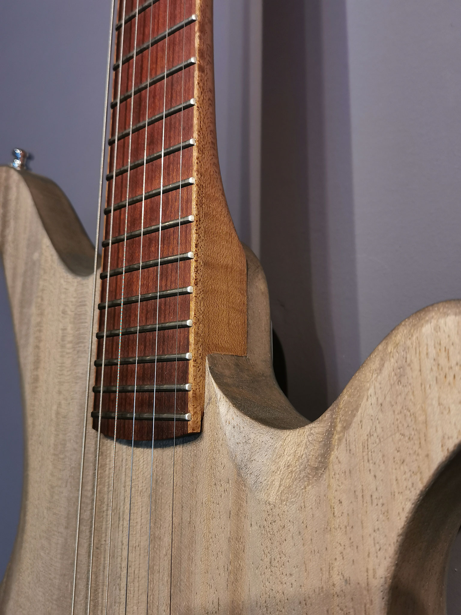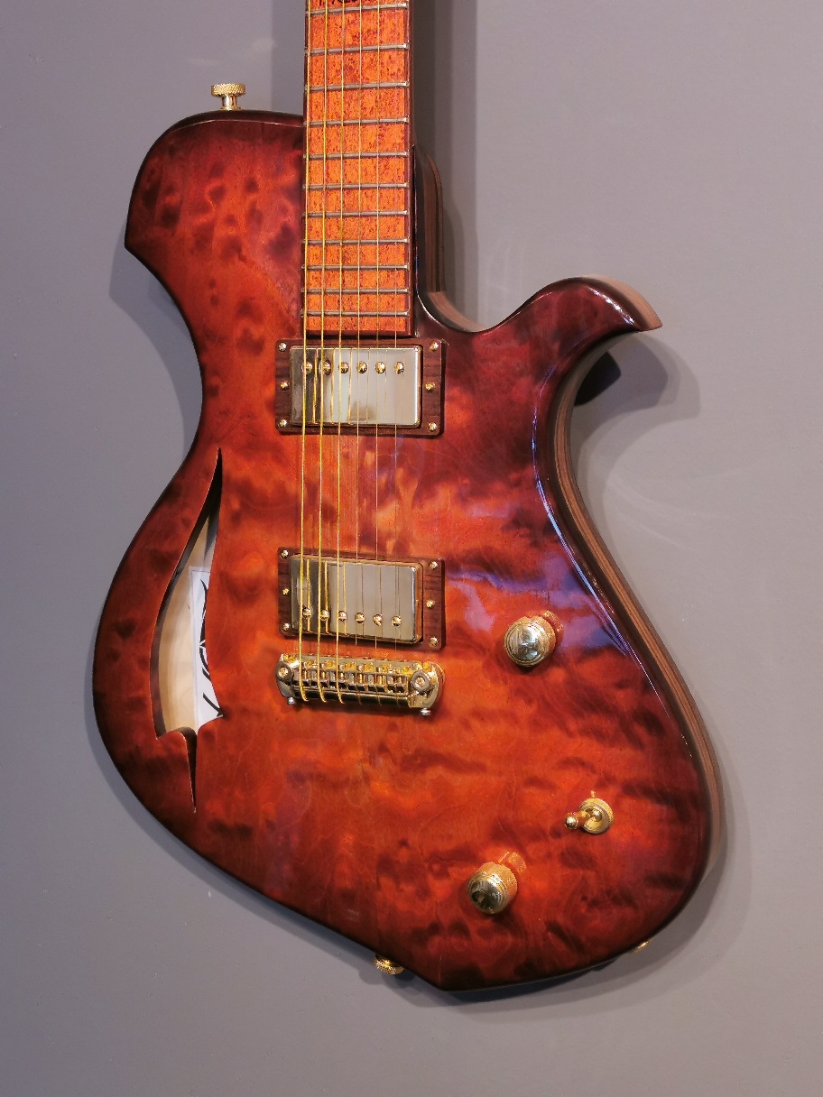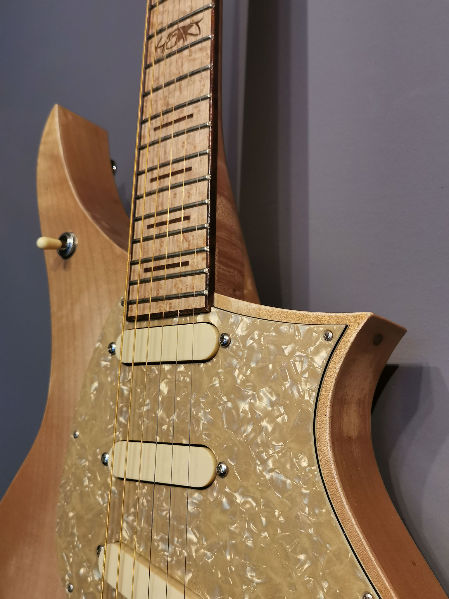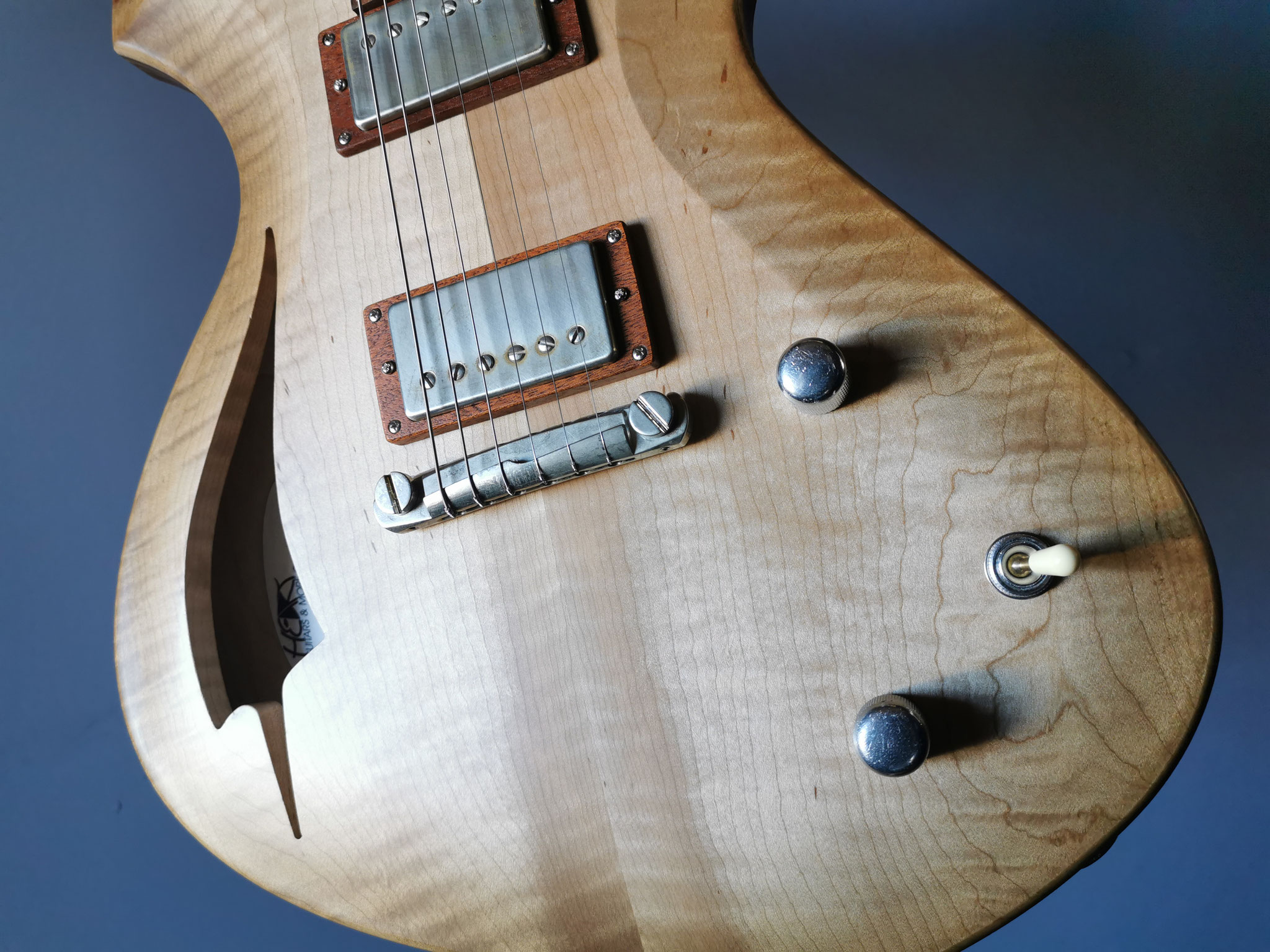 Für spezifische Klangansprüche erfolgt eine gezielte Auswahl erlesener Materialien. Bewusst werden keine CNC-Fräsen, sondern manuelles Werkzeug eingesetzt. Mit viel Fingerspitzengefühl, traditionellen Techniken und neuen Bauweisen entstehen maßgeschneiderte Custom Instrumente, abgestimmt auf individuelle Bedürfnisse und Wünsche. Ob es sich um favorisierte Materialien, Halsformen oder selbst entwickelte Designs handelt, Ihr Trauminstrument wird schließlich in Haptik, Klang & Optik genau auf Sie zugeschnitten sein. Oberflächen werden mit ausgewählten Beizen, Matt- und Hochglanzlacken bearbeitet, in vielen Einzelschritten − um nur eines von vielen Beispielen zu nennen, wo sich das traditionelle Handwerk von industrieller Fertigungspraxis qualitativ abhebt. Mit meinem Custom Shop, jahrelanger Berufserfahrung & eigenen Innovationen im Zupfinstrumentenbau stehe ich Ihnen bestmöglich zur Seite. Für weitere Informationen oder zur Terminvereinbarung kontaktieren Sie mich gern über das Kontaktformular.